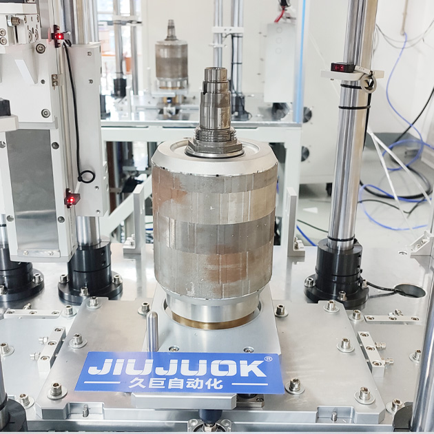 - Einpressen und Verarbeitung der Welle: Kühlung und Erwärmung mit flüssigem Stickstoff, um die Rotorwelle und den Kern der Presspassung zu verpressen, Überwachung der Einpresskraft und der Verschiebung in Echtzeit, Einpressgenauigkeit von ± 0,01 mm; anschließende synchrone Fertigstellung der Montage der dynamischen Ausgleichsplatte, Verriegelungsnieten, Entmagnetisierung des Wellenkopfes und andere Prozesse, um sicherzustellen, dass das dynamische Gleichgewicht des Rotors Leistung, reduzieren die Geräusche und Vibrationen des Motors Betrieb.